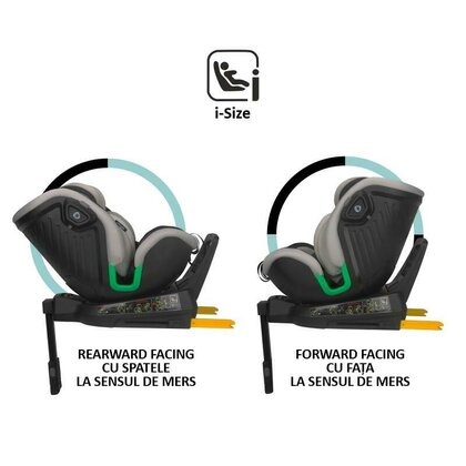*acest produs necesita existenta unui sistem isofix la instalarea in autoturism. Se poate instala doar cu ajutorul sistemului isofix si a piciorului de sustinere. Consultati manualul masinii pentru a gasi punctele de ancorare si locurile de pe bancheta unde se poate monta scaunul.