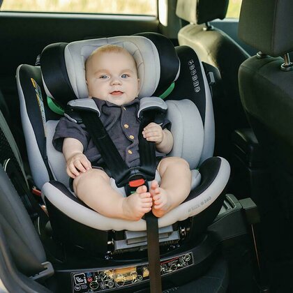 Gratie sistemului de rotatie 360 grade, utilizarea scaunului devine extrem de usoara, oferind posibilitatea de a-l purta cu fata sau spatele la sensul de mers, in functie de varsta si de recomandarile de siguranta.