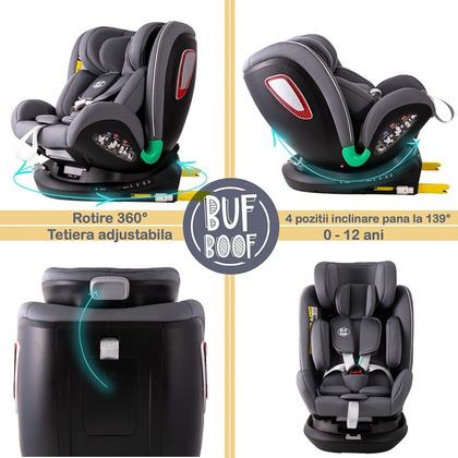 Scaun auto Platinum Deluxe i-Size Buf Boof cu isofix rotativ 360 grade Top Tether SIPS 40-150 cm 0-36 kg SimpleGrey