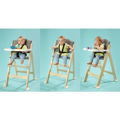 Scaun de masa, Lionelo, Floris, 3 in 1, Din Lemn, Transformabil, Reglabil pe inaltime in 4 pozitii, Suport picioare- 4 pozitii, 6 luni- 12 ani, Sustine 40 kg, Bej