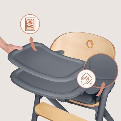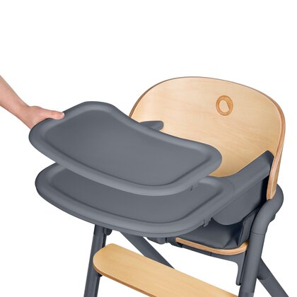 Scaun de masa multifunctional Celia, Lionelo, Din lemn de fag, 6 luni- adult, Reglabil pe inaltime, Spatar lat, Sezut ergonomic, Tavita silicon, Suport de picioare reglabil, Greutate maxima 90 Kg, Gri