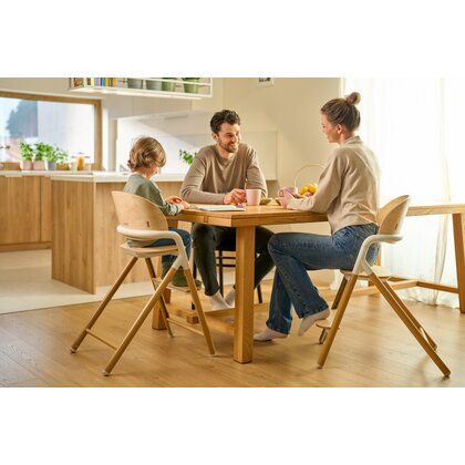 Scaunul are înălțimea perfectă pentru mesele standard, ceea ce permite copilului să stea confortabil la masă alături de părinți și frați, indiferent de vârstă.