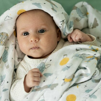 - Dimensiune universala 68 x 68 cm – perfecta pentru infasat, alaptat, acoperit caruciorul sau folosit ca paturica usoara.
