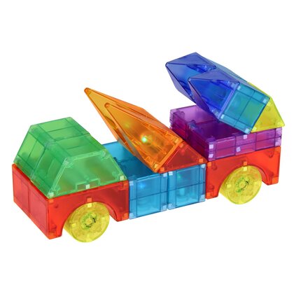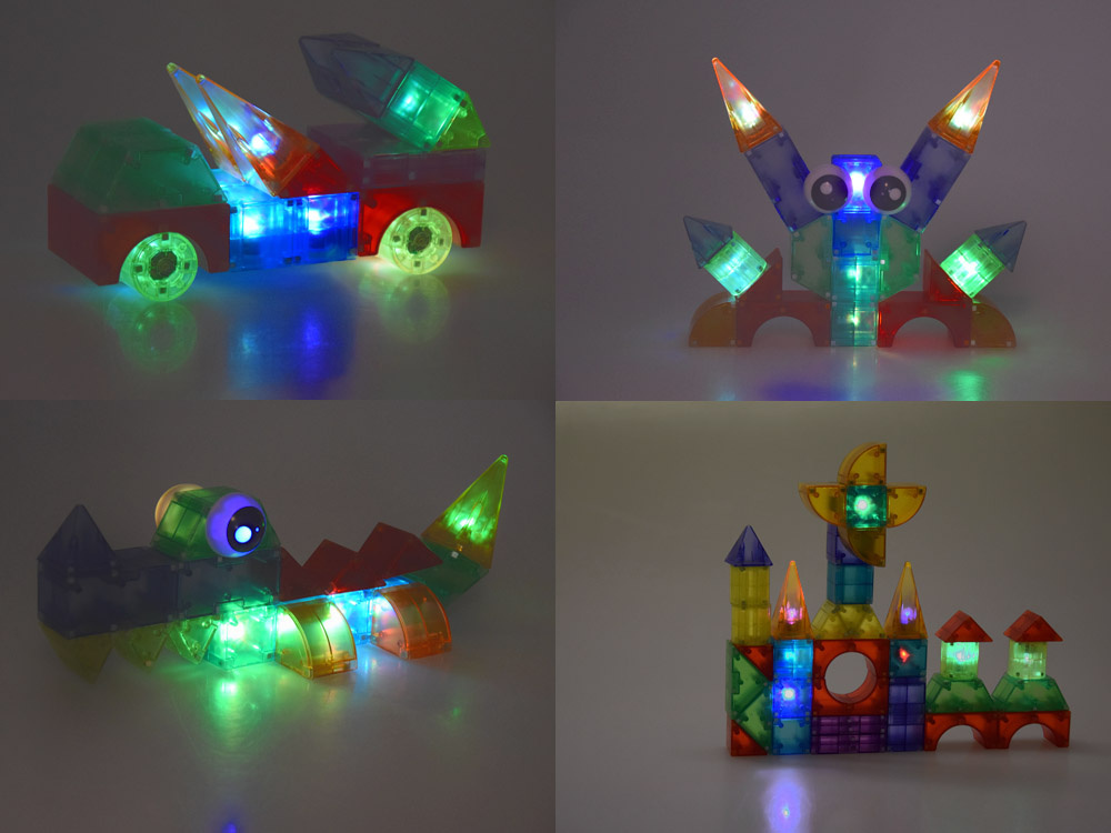 64 piese magnetice – inclusiv 12 elemente iluminate care creeaza efectul “WOW” ✔️