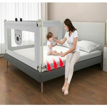 Usor de monta si compatibil cu orice model de pat (cu somiera adancita sau boxspring), acest model de bariera vine cu o caracteristica inedita extrem de utila – poate fi culisata pentru a putea facila accesul copilului in si din pat