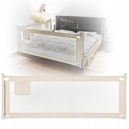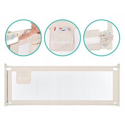 Protectie laterala pat, Primabobo, Classic, 180 cm, Inaltime reglabila 73-92 cm, Cu plasa respirabila, Prevazuta cu un buzunar, Bej
