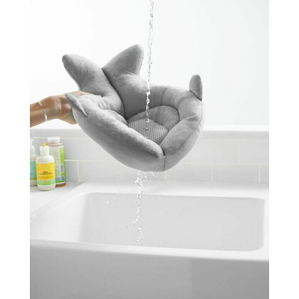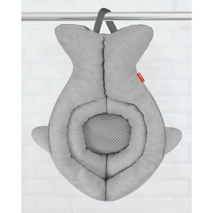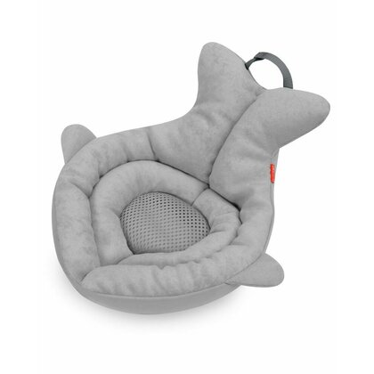 Suport moale de baie, Skip Hop, Pentru nou-nascuti si sugari, Cu tetiera captusita, Cu plasa pentru scurgerea apei, Bumbac, Fara PVC si ftalati, 49 x 32 x 26.5 cm, 0-6 luni, Gri