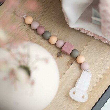 Clema pentru suzeta, Nattou, 100% silicon fara BPA, Cu sistem de prindere la suzeta, Cu margele, 30x7x18 cm, Roz