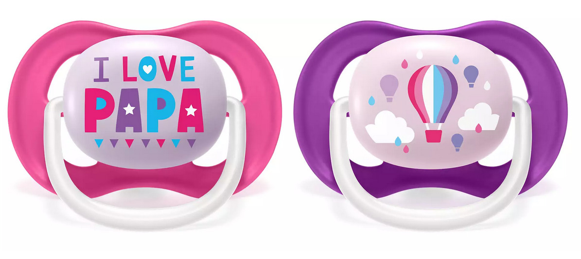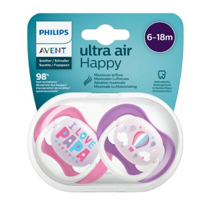Suzete set, Philips Avent, Ultra air, 2 buc, 6-18 luni+, Din silicon, Mov si Roz