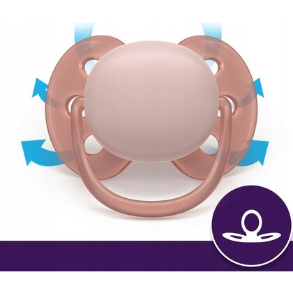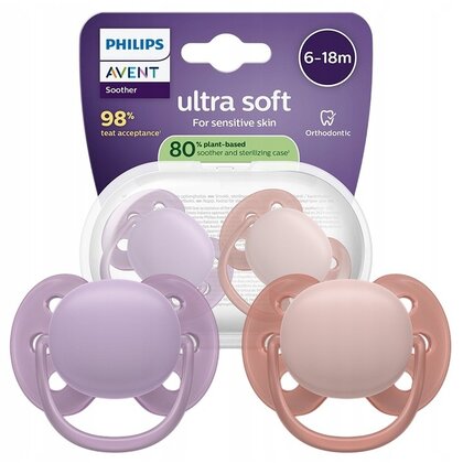 Set 2 suzete, Philips Avent, Colectia Ultra Soft , Ortodontice, Fara BPA, Cu disc flexibil, Pentru pielea sensibila a bebelusului, 6-18 luni, Roz/Mov