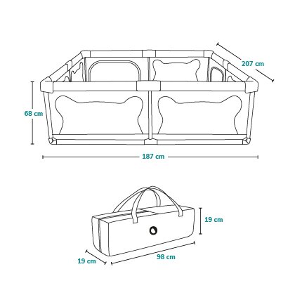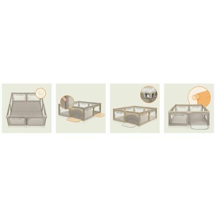 - Zona de joaca inchisa creeaza un mediu curat si sigur pentru copil, cu laturi din plasa pentru o vizibilitate usoara.
