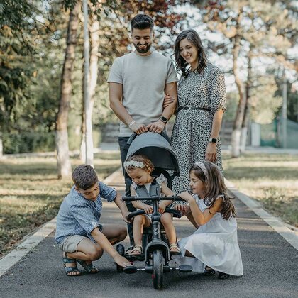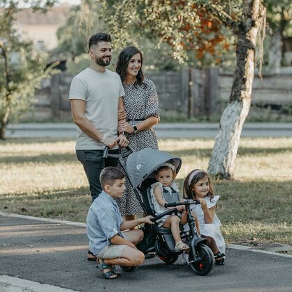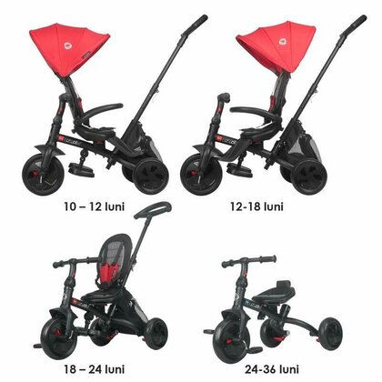 Toate accesoriile se pot indeparta pe masura ce copilul creste, in final rezultand o tricicleta clasica ce poate fi folosita pana la varsta de aproximativ 5 ani (greutate maxima suportata: 25 kg).